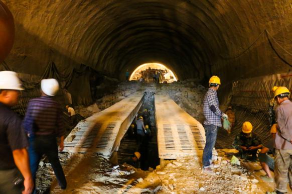 该隧道由中国铁建中铁十五局集团承建。为保证施工安全和工程质量,中铁十五局集团成贵铁路项目部引进了C6地质钻机、钢筋网片焊接机、钢板钻孔机等新设备,采用了开挖水压爆破、防水板超声波焊接、止水带热熔焊接等新工艺,投入大额资金建立了门禁、人员定位、围岩量测、超前地质预报、广播报警、视频监控等信息化控制系统,完善了一系列的安全质量保证体系。
