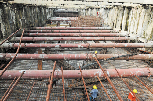 7月15日,工人们正在长沙地铁1号线湘雅路站站台施工。据了解,该站台主体即将封顶。