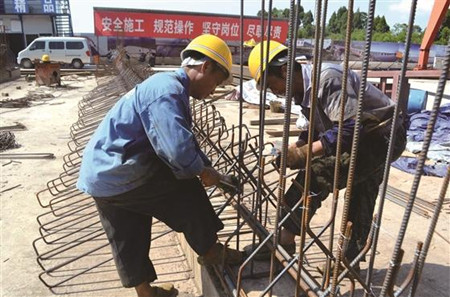 “桥梁施工大部分都是高空工作,在几十米高的地方,你要克服心理上的恐惧,还要熟练地施工,不容易。”平地上,工人王刚头戴安全帽,一边留意着高空工作的同伴,一边忙着给桥墩钢模刷漆。“刷漆就像贴膜,起到保护钢模的作用。”说话间,一旁的起吊机开动了,在王刚和同事的帮助下,刷好漆的钢模被运送到上空负责安装钢模的工作人员手中。