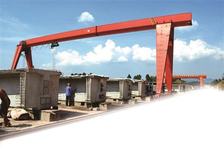 梁片到达架桥机尾部后,将被缓缓吊起,转移到架桥机上