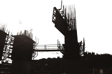 8月10日上午9点,记者走进成都经济区环线高速公路仁寿段东干渠大桥建设现场看到,伴随着机器的轰鸣声,施工人员正头顶烈日在离地48米的桥墩上埋头苦干,加紧施工。