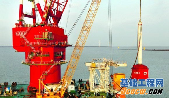 13日,龙源振华公司的工程技术人员经过5个多小时的紧张作业,将今年第38根风电单管桩高精度打入海底40米。上午7时18分,迎着初升的太阳,起重机将液压冲击锤吊离桩顶。