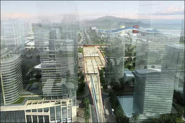 福田站效果图,周围高楼林立
