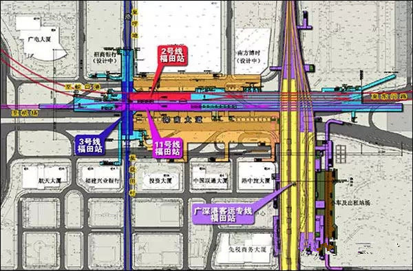 按照目前的进度,预计福田站年底前可以开通运营(如下图:福田站结构全貌)。它将广州、深圳、香港的城市轨道交通连成一片,大大方便了广州、深圳、香港三地市民的出行玩乐。