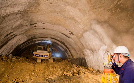 9月5日,中铁二十五局技术人员在九景衢铁路鸡冲岭隧道进行测量记录。