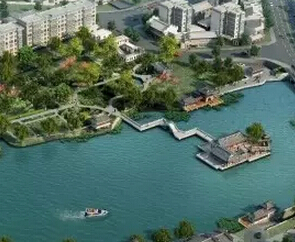 湖中的小岛上,一些原先的景观建筑已经被拆除,编号移位。在石桥等景观建筑的西侧荷花仙子中间,一道拦湖大坝已经建成,荷花池湖水被大坝隔断。而在小桥西侧,一道堤坝也已经筑完,东侧从古运河过来的古运河河水也被隔断,整个围堰已经全部建成。