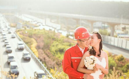 于洪仁和吴冬英是蜘蛛山隧道工地的一对夫妻,于2012年12月12日领取结婚证的他们,最大的愿望就是在高架桥上举行婚礼。“田”字路工程对于洪仁和吴冬英来说,有着非常特殊的纪念意义。这是他们第一次共同参与的工程;第一次参与冬季施工的工程;第一次在工地上过的春节……在父母的督促下,2012年年底两人回辽宁领取了结婚证。因工程忙,婚期一再推迟,婚纱照也没拍。
