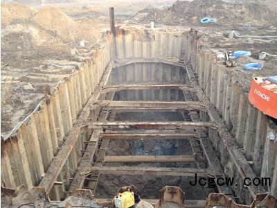 潮白河大桥8号深基坑为本斜拉桥主跨边墩承台基坑,位于潮白河河道中央,地质情况复杂,土体稳定性差,土体含水量大,同时也是本项目最大最深基坑(长30米,宽10.8米,设计深度13.5米),该基坑设计采用拉森Ⅵ型钢板桩支护施工、3道型钢内支撑。施工中先后克服了钢板桩插打困难、涌沙涌水的施工困难,顺利完成了基坑开挖施工。