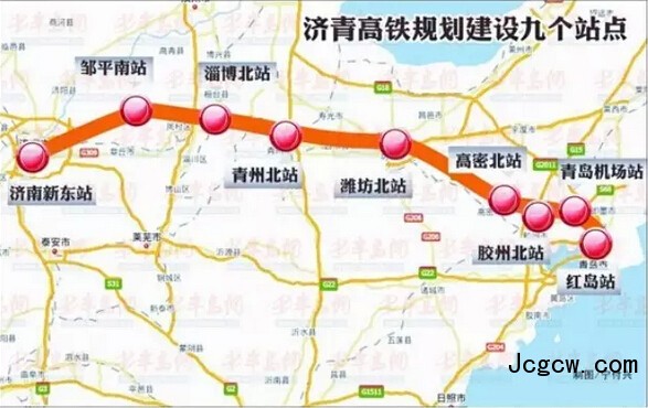 根据此前发布的发布承包招标公告,新建济青高铁长度为307.9公里,设计时速350公里/小时,全线设济南东客站、章丘北、邹平、淄博北、临淄北、青州北、潍坊北、高密北、青岛机场和红岛等10个车站,并对胶州北站进行改造。