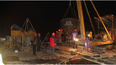 2015年12月31日晚19:30,新年的钟声即将敲响的时刻,中铁一局集团桥梁工程有限公司承建的温州市重点工程------苍南县龙港新城巴曹大桥工程(一期)南岸主墩首根桩开始浇筑,次日8时成功浇筑完毕。