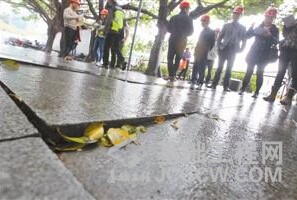 核心提示:南山某大厦施工工地深坑给周边土地张力造成影响。深坑让附近的人行道路产生裂缝。 在一个快速发展中的大都市中,施工工地往往