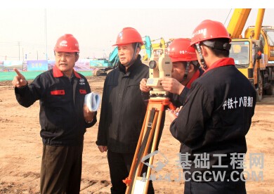 2月23日,滨海建投集团副总经理于立群(左二)、中国铁建十八局集团副总工代敬辉(左一)在现场办公