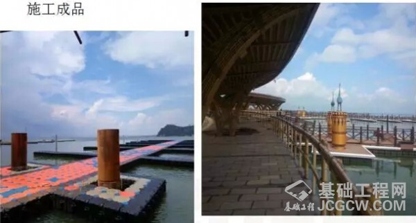 滇海古渡大码头环廊,基础形式为桩基承台基础,其中灌注桩100根,其余为静压管桩。建筑结构为梁板结构,建成的环廊为码头的人行通道。