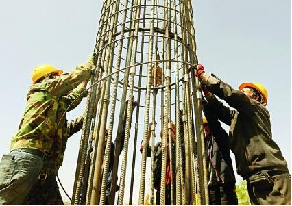 在现场,工人们正在机械的协助下,将钢筋笼缓慢下放到已经挖好的深达60米的孔内,每下一段,就需要人工对钢筋笼进行再加固,在向其中浇筑混凝土后,即可完成一根桥桩。看上去很简单,但整个施工过程需要经过十几个步骤。
