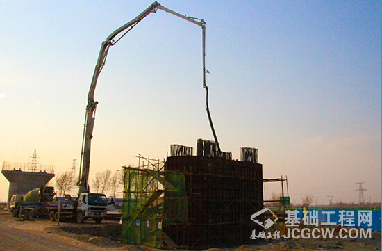 首个完成浇筑的109#墩柱为60m+100m+60m跨珲乌高速公路连续梁主墩,设计墩高6.95,为双线圆端形实体桥墩,底部横截面为10.4m×4.2m。为确保安全优质完成混凝土浇筑,项目部、第二架子队组织专项技术交底和现场技术交流。在墩柱正式施工中,严格执行相关施工规范,控制混凝土原材料和混凝土拌合质量,选择有经验的振捣人员进行振捣,对施工混凝土严格进行混凝土塌落度控制,确保了该根墩柱的高质量、高效率施工。