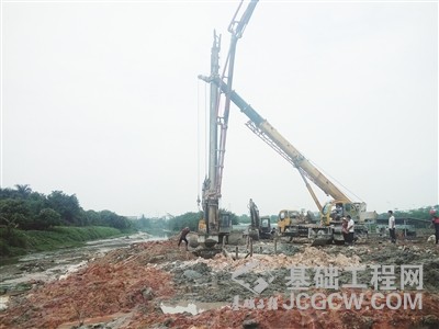 漳州高新区圆山新城纬十一路道路工程进行桥梁桩基钻孔灌注