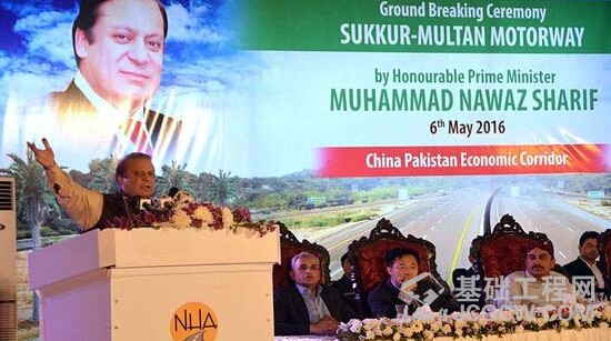 项目合同总金额为2943亿卢比(约合28.9亿美元),由中国进出口银行提供融资支持。今年4月28日,与该项目有关的融资协议全部签订,为项目开工奠定坚实基础。 5月6日,在巴基斯坦信德省苏库尔地区,巴基斯坦总理谢里夫(左一)在开工仪式上致辞。