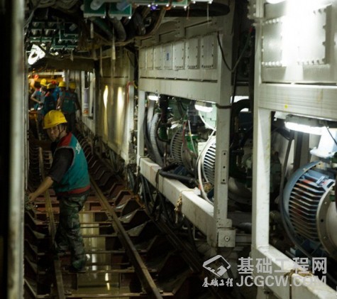 这条管线距离地面约7米,记者头顶有一条通风管,向管道深处输送着新鲜空气。很快,记者就在管道内约1公里处看见了盾构室里坐着的管线项目技术部部长刘磊。刘磊一天要在地面下工作8个小时,主要监测机器运行是否正常、盾构机掘进不能偏离轴线。