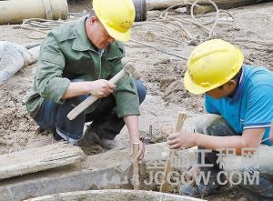 工人们认真施工。