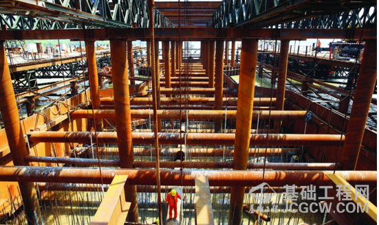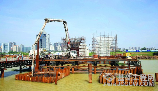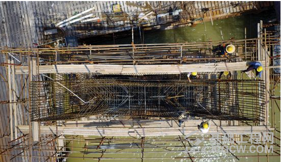 隆生大桥江北方向的主桥墩正在施工。