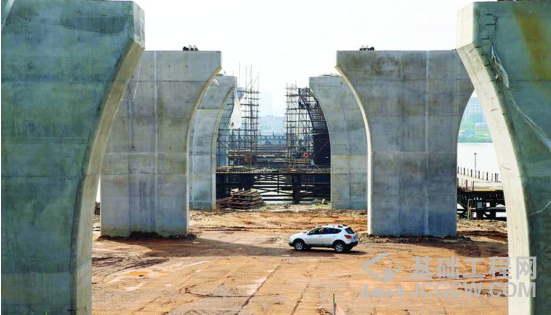 隆生大桥江北方向已建好的桥墩。