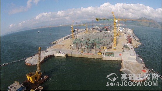 港珠澳东人工岛岛隧结合部隧道基础夯平施工完成