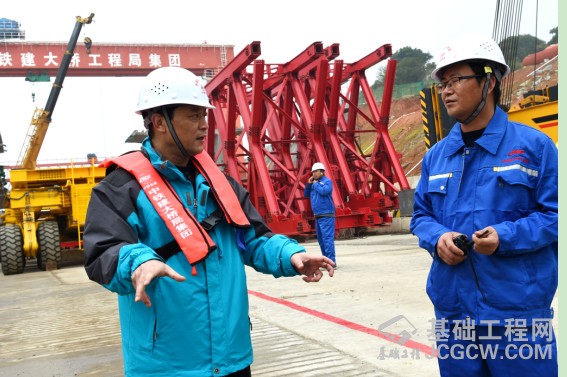 大桥工程局集团领导与技术人员在现场研究方案