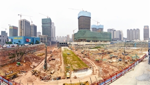 广州著名的地下商场流行前线,建筑面积8000平方米。而万博商圈的地下空间,建筑面积将达到180万平方米,比广州流行前线大得多,是珠江新城地下空间的三倍。万博商圈有望成为广州最大的地下城。更重要的是,这180万平方米里面,只有21%是商业,有78%是交通设施。图是万博商圈地下空间建设全面铺开。