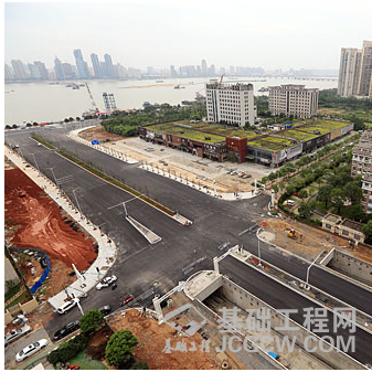 7月4日,红谷隧道西岸工程建设现场,工作人员正在对赣江中大道至红谷中大道段的道路进行路面恢复施工。