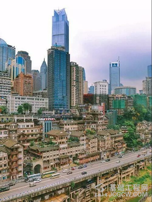 重庆著名网红“洪崖洞”,顶楼和底楼出门都是大马路,地下还有停车场,被网友赞为“城市地质层”。