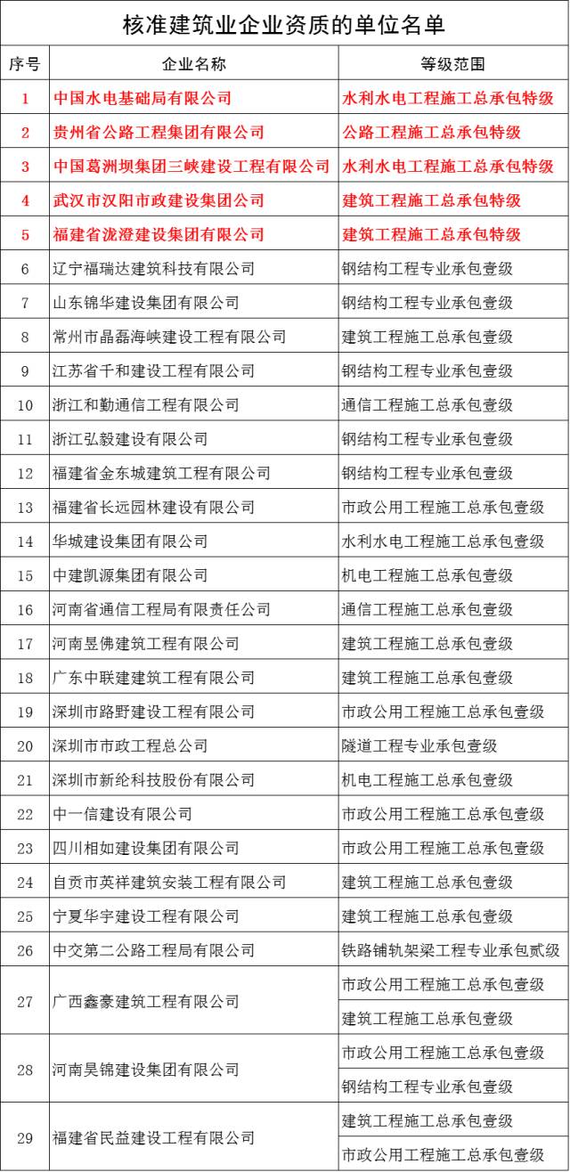 住建部核准5个特级资质、33个甲级资质:电建基础局、葛洲坝三峡公司、贵州公路集团成大满贯!