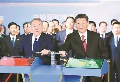 6月8日,正在哈萨克斯坦访问的国家主席习近平在哈萨克斯坦总统纳扎尔巴耶夫陪同下,参观阿斯塔纳专项世博会中国国家馆,共同出席中哈亚欧跨境运输视频连线仪式。