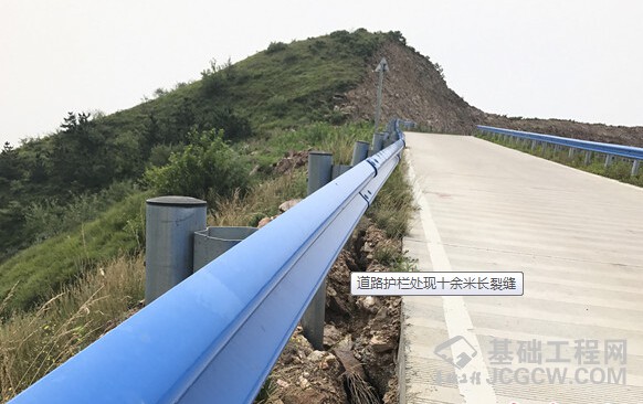 新郑具茨山景区山道地基现沉降 护栏裂缝10余米长