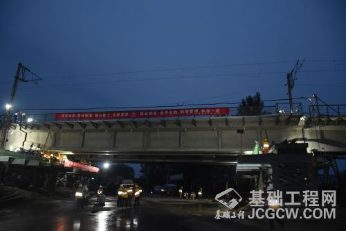 7月19日8时50分,随着压道实验车的顺利通过,标志着中铁十四局枣临铁路东二环中桥32米T梁大封锁换梁工程圆满完工。据悉,此次换梁施工,不仅为整孔梁长最长,同时还利用新型施工工艺将以往同类工程53小时的施工时间压缩到了7.5小时,由此创出了山东省内既有线32米T梁整孔更换的新纪录。