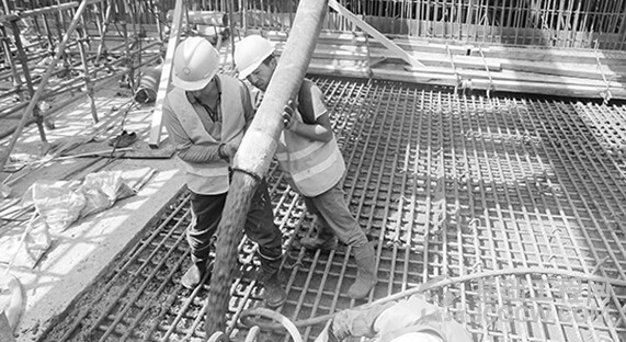 工人浇筑东方红广场站主体结构最后一块混凝土底板。