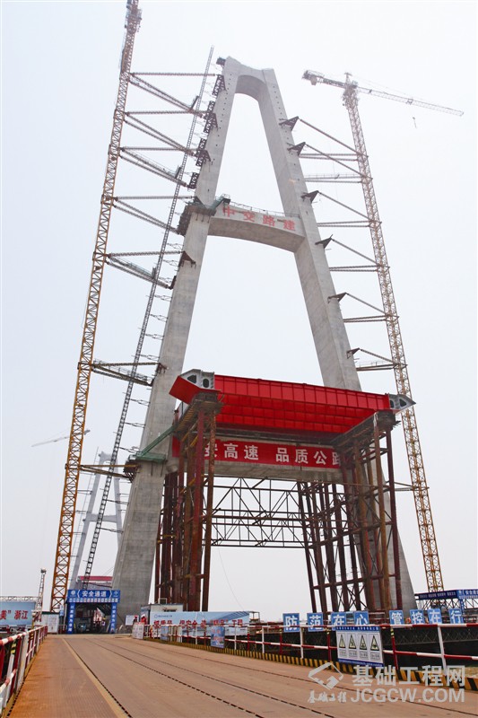 “由于A字型塔柱下宽上窄场地狭小,钢梁与塔壁间距仅30厘米,吊装作业空间大大受制,整个过程不能有丝毫疏忽,而且过往船只泛起的波浪,也给钢梁的精确定位带来很大的挑战。再加上涨落潮速度较快,允许吊梁时间往往只有一个小时,从而增加了吊装施工的难度。”该标段负责人说,为保证吊装施工顺利进行,大桥建设者不断优化钢梁吊装施工技术与安全方案,并事先对现场作业人员进行技术、安全方面的指导。7月24日凌晨5时起,施工人员整装待发,严格对照潮汐表安排吊装时间,并选择在白天的平潮期进行施工,以减少波浪的影响,最终花了一个小时,确保了该大桥第三榀钢梁的成功吊装。