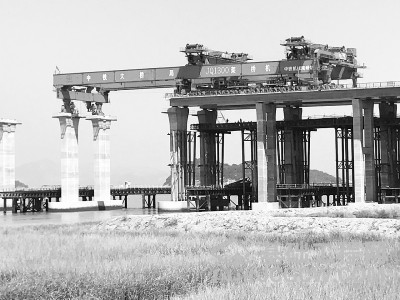 三门湾跨海大桥及接线工程全长55公里,连接舟山至宁波,总投资约126亿元,是我国继杭州湾跨海大桥、港珠澳大桥、舟山跨海大桥之后又一座大型跨海公路大桥。中铁科工集团机械院自主研制的1300吨箱梁搬提运架设备,担起中铁大桥局集团承建的三门湾跨海大桥TJ8标段222片箱梁架设任务。