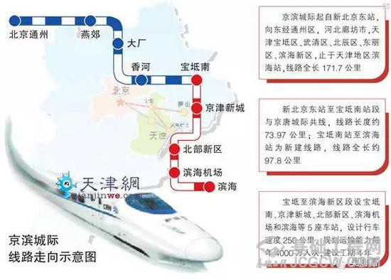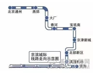 京滨城际铁路宝坻到滨海新区段工程项目去年获得国家发改委批复,区段线路正线长约97.8公里,全线设宝坻南、京津新城、北部新区、滨海机场和滨海等5座车站。