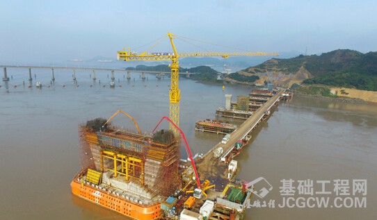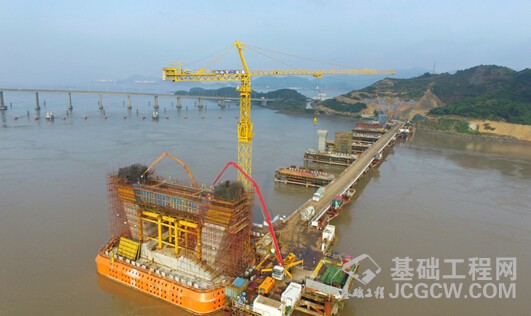舟山:富翅门大桥主塔开始下横梁浇筑
