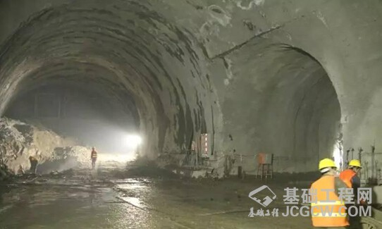 【掌子面比篮球场大】 从二号斜井一路下行,有一处宽阔的掌子面。这是一段暗挖隧道,跨度32.7米,高度19.5米,整个面积比一个标准篮球场还大。施工跨度大再加上隧道穿越军都山,地形起伏较大,无法采用盾构掘进机,只能采取爆破工法。