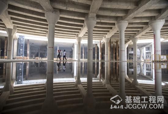 8月25日拍摄的正在建设中的武汉光谷广场综合体工程地下一层空间。