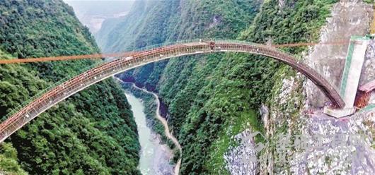由中铁一局桥梁公司承建的南渡江特大桥,全长272.26米,净跨190米,高196米,宽10米,是目前国内最大跨度的劲性骨架外包钢筋混凝土箱型拱桥。