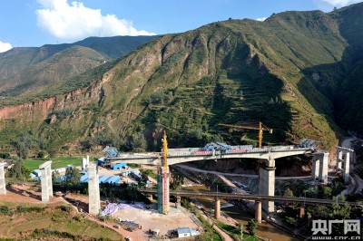 11月7日下午,由中铁十一局承建的新建成昆铁路永仁至广通段龙川江大桥成功进行了全国首例铁路大桥墩中转体,墩中转体高度、单体重量创造了新的世界纪录,标志着我国桥梁建设又一次取得新突破。