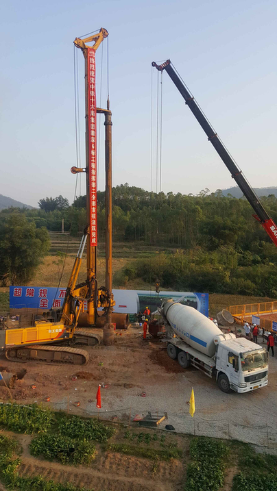 据悉,赣(州)至深(圳)客专6标工程线路总长度26.849公里,其中包含20座桥梁,其中特大桥9座;大桥5座。本次首桩灌注是除先行标段外广东段全线的第一根桩基灌注,其成功灌注,不仅是项目桩基施工的开端,也为后续桥梁桩基灌注施工积累了宝贵经验。