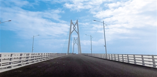 港珠澳大桥主体工程包含22.9公里主体跨海桥梁及6.7公里的沉管隧道。当记者坐上汽车,从珠海洪湾这端驶上大桥,感受到的是双向六车道的平坦通畅。这座前后都望不到头的大桥上,建有3段斜拉桥,分别是“风帆”“海豚”“中国结”造型,寓意深远。