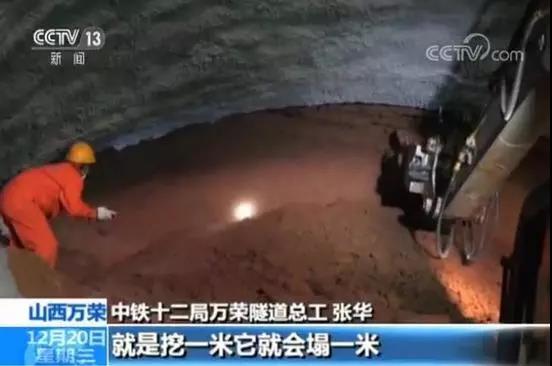 这种地质就是一种粉细沙尘地质,就跟我们开挖万荣隧道里面的地层是一样的,如果说我们按照正常的开挖方法,就是挖一米它就会塌一米,这个隧道根本上就是挖不通的,这是一个世界性的难题。