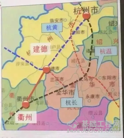 线路北起建德,在建德东站接杭黄铁路,一路向南经更楼、寿昌、龙游、新建衢州西站,至衢州江山连沪昆铁路。全长约124公里,设计时速350公里。建衢段去年已开工建设,接下来要建的是杭州西站至富阳西站至建德东站连接线,将于2022年亚运会前开通运营。