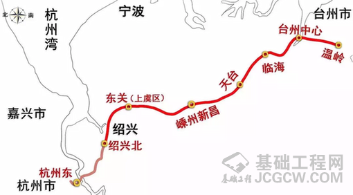杭绍台铁路是国内第一个采用PPP(政府和社会资本合作)模式的铁路项目,北起杭州东站,杭州至绍兴段利用既有杭甬高速铁路,新建线路从绍兴北站引出,经绍兴市越城、上虞、嵊州、新昌和台州市天台、临海、椒江、路桥、温岭等县(市、区),通过温岭站联通既有甬台温铁路,在温岭站预留向南至温州方向延伸条件。