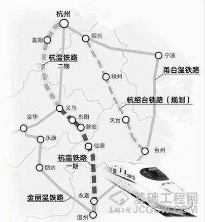 杭温铁路一期义乌至温州段,从既有沪昆铁路义乌站引出,经金华市、台州市、温州市,引入既有甬台温铁路永嘉站,利用甬台温铁路延伸至温州南站,设7座车站。