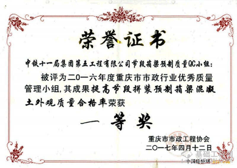 2017年重庆市市政工程协会QC成果一等奖